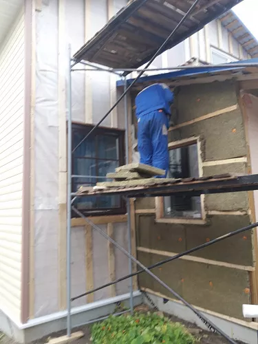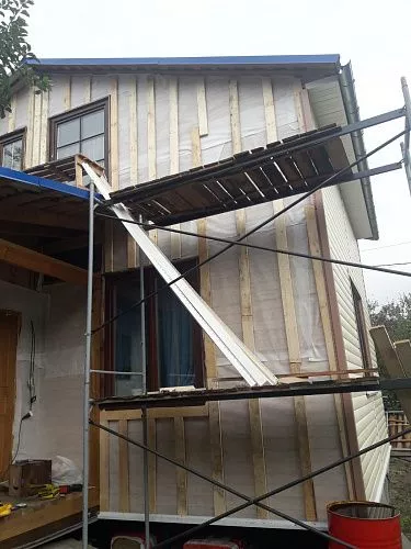Монтаж-демонтаж лесов (до 12 м высота)Монтаж металлических отливовРемонт подшива (Уровень 2)Монтаж утеплителя 50 ммМонтаж деревянной обрешетки (Выравнивающая)Монтаж гидро-пароизоляционной пленкиМонтаж виниловых комплектующихМонтаж винилового сайдинга (Подшив)Монтаж винилового сайдинга