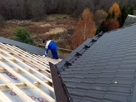 1 Монтаж-демонтаж лесов (до 12 м высота) шт 8 2 Ремонт подшива (Уровень 2) пог.м 68 3 Монтаж водосточной системы ( желоб.труба) пог.м 63 4 Монтаж виниловых комплектующих пог.м 172 5 Монтаж винилового сайдинга (Подшив) м2 32 6 Обустройство трубы шт 1 7 Обустройство примыканий пог.м 21 8 Обустройство ендов пог.м 22 9 Установка снегозадержателей пог.м 30 10 Установка колпака на дымоходную трубу, вент.шахту, столб. шт 1 11 Монтаж утеплителя 101-200 мм (кровля) м2 161,6 12 Монтаж металлических комплектующих (кровля) пог.м 348 13 Монтаж шаговой обрешетки ( кровля) м2 233,6 14 Монтаж контр. обрешетки ( кровля) м2 233,6 15 Монтаж гидро-пароизоляционной пленки (кровля) м2 383,6 16 Монтаж сложной кровли м2 233,6 17 Демонтаж утеплителя (кровля) м2 150 18 Демонтаж обрешетки (кровля) м2 233,6 19 Демонтаж гидро-пароизоляции (кровля) м2 383,6 20 Демонтаж водосточной системы (кровля) пог.м 50 21 Демонтаж кровли (Без сохранения) м2 233,622 Демонтаж вагонки (кровля) м2 28"