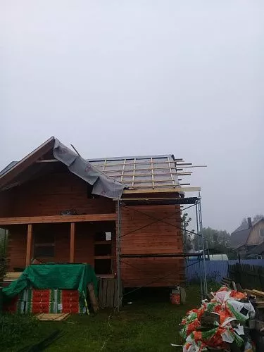 Монтаж-демонтаж лесов (до 12 м высота)Демонтаж гидро-пароизоляции (кровля)Демонтаж обрешетки (кровля)Монтаж двухскатной кровлиМонтаж утеплителя 101-200 мм (кровля)Монтаж гидро-пароизоляционной пленки (кровля)Монтаж черновой обрешетки доска ( кровля)Монтаж шаговой обрешетки ( кровля)Монтаж контр. обрешетки ( кровля)Монтаж конькового аэратораМонтаж каркаса подшива (кровля)Монтаж металлических комплектующих (кровля)Монтаж винилового сайдинга (Подшив)Монтаж виниловых комплектующихМонтаж водосточной системы ( желоб.труба)Монтаж металлических комплектующихУстановка снегозадержателей