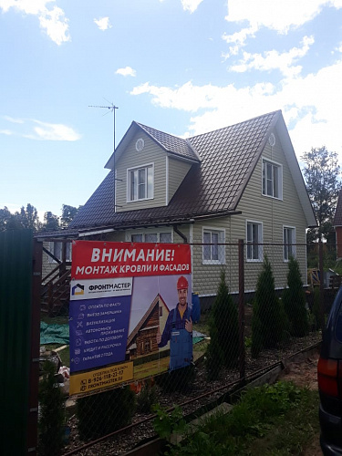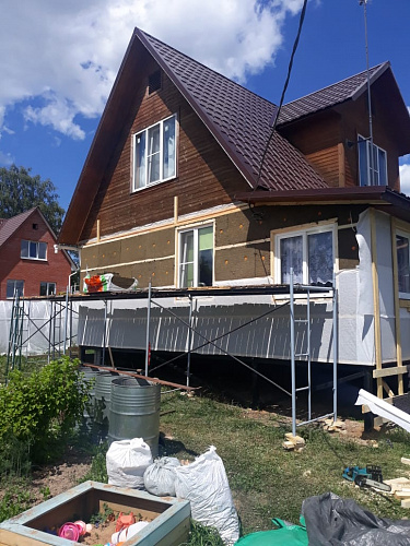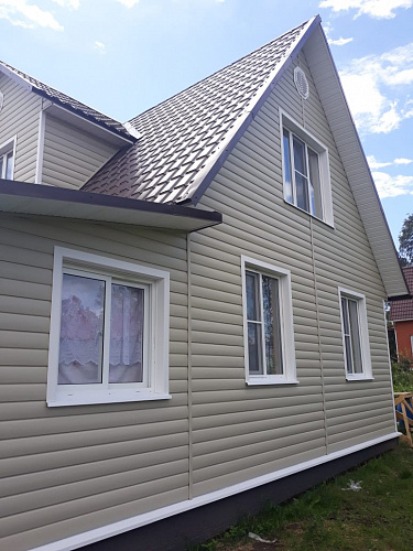Монтаж-демонтаж лесов (до 12 м высота)Монтаж каркаса подшива (кровля)Монтаж винилового сайдинга (Подшив)Монтаж винилового сайдингаМонтаж виниловых комплектующихМонтаж гидро-пароизоляционной пленкиМонтаж деревянной обрешетки (Выравнивающая)Монтаж деревянной обрешетки по дереву (1-ый ряд)Монтаж металлических отливовМонтаж утеплителя 50 ммУстановка вентиляционных решеток