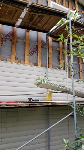 Монтаж гидро-пароизоляционной пленкиДемонтаж водосточной системы (кровля)Монтаж утеплителя 50 ммМонтаж металлических отливовМонтаж деревянной обрешетки по дереву (1-ый ряд)Монтаж деревянной обрешетки (Выравнивающая)Монтаж виниловых комплектующихМонтаж металлических комплектующихУстановка вентиляционных решетокМонтаж винилового сайдинга (Подшив)Монтаж водосточной системы ( желоб.труба)Монтаж виниловых панелейМонтаж каркаса подшива (кровля)Монтаж-демонтаж лесов (до 12 м высота)Дополнительные услуги