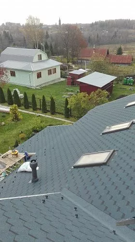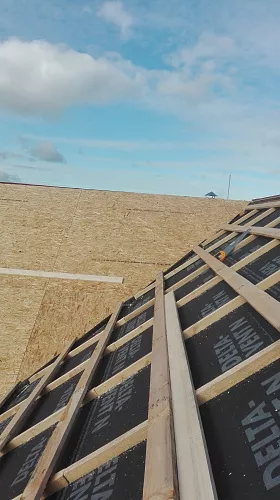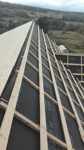 Монтаж мягкой кровлиУстройство стропильной конструкции (кровля)Монтаж черновой обрешетки доска ( кровля)Монтаж шаговой обрешетки ( кровля)Монтаж контр. обрешетки ( кровля)Монтаж сплошной обрешетки ( кровля)Монтаж гидро-пароизоляционной пленки (кровля)Монтаж утеплителя 101-200 мм (кровля)Монтаж подкладочного ковраМонтаж коньково-карнизной черепицыМонтаж металлических комплектующих (кровля)Монтаж конькового аэратораМонтаж светопрозрачных конструкций (Уровень 2)Монтаж-демонтаж лесов (до 12 м высота)