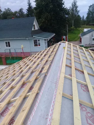 Монтаж мягкой кровлиУстройство стропильной конструкции (кровля)Монтаж черновой обрешетки доска ( кровля)Монтаж шаговой обрешетки ( кровля)Монтаж контр. обрешетки ( кровля)Монтаж сплошной обрешетки ( кровля)Монтаж гидро-пароизоляционной пленки (кровля)Монтаж утеплителя 101-200 мм (кровля)Монтаж подкладочного ковраМонтаж коньково-карнизной черепицыМонтаж металлических комплектующих (кровля)Монтаж конькового аэратораМонтаж медной полосы препятствующей образованию мхаМонтаж-демонтаж лесов (до 12 м высота)