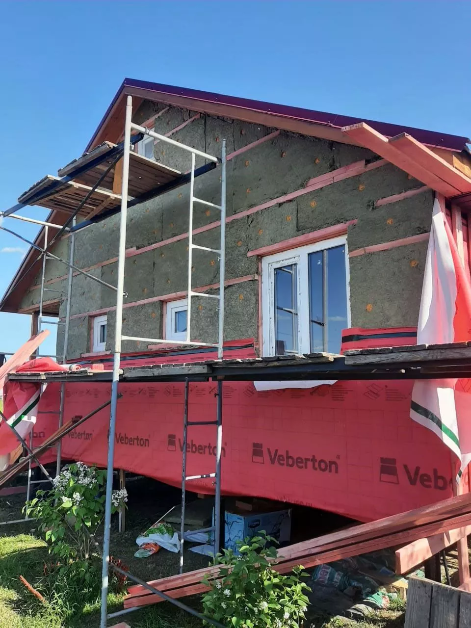 Монтаж деревянной обрешетки по дереву( 2-ой ряд)