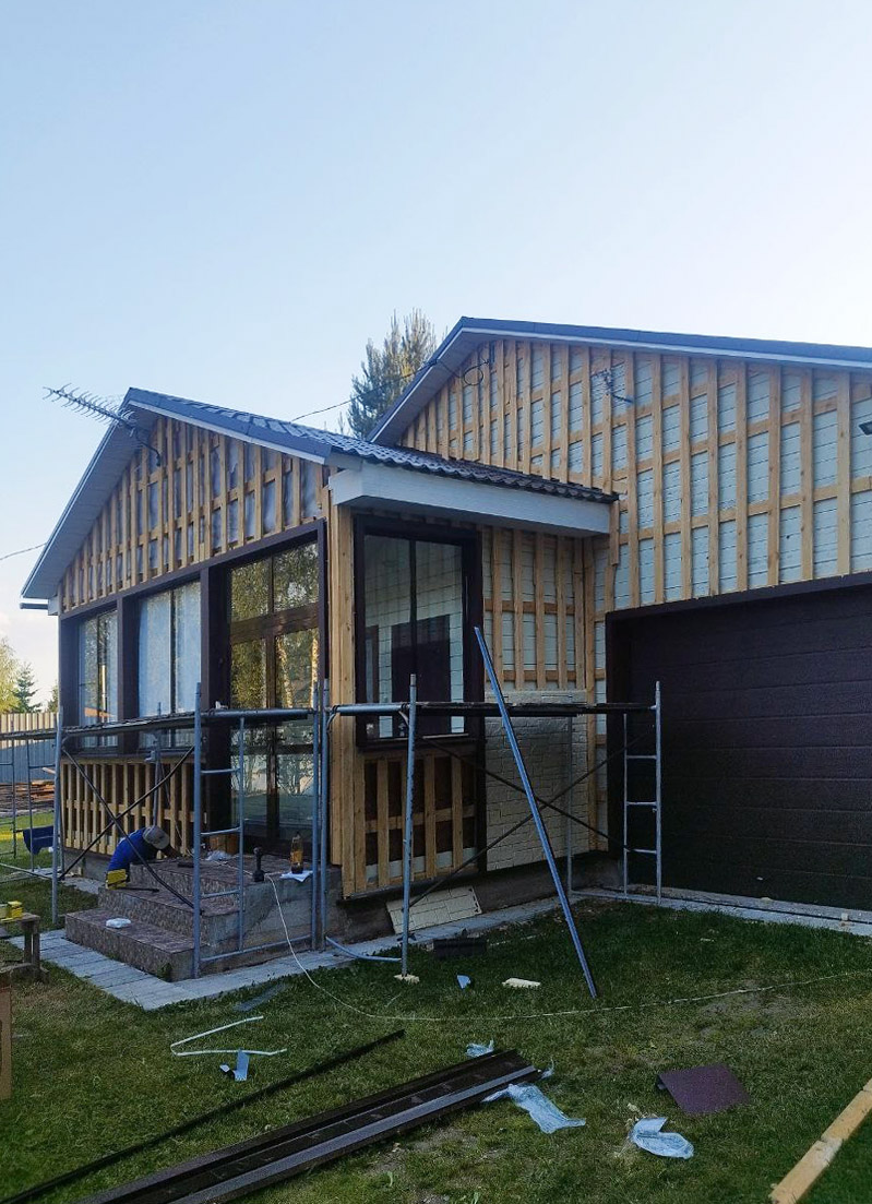 Монтаж деревянной обрешетки по дереву (1-ый ряд)