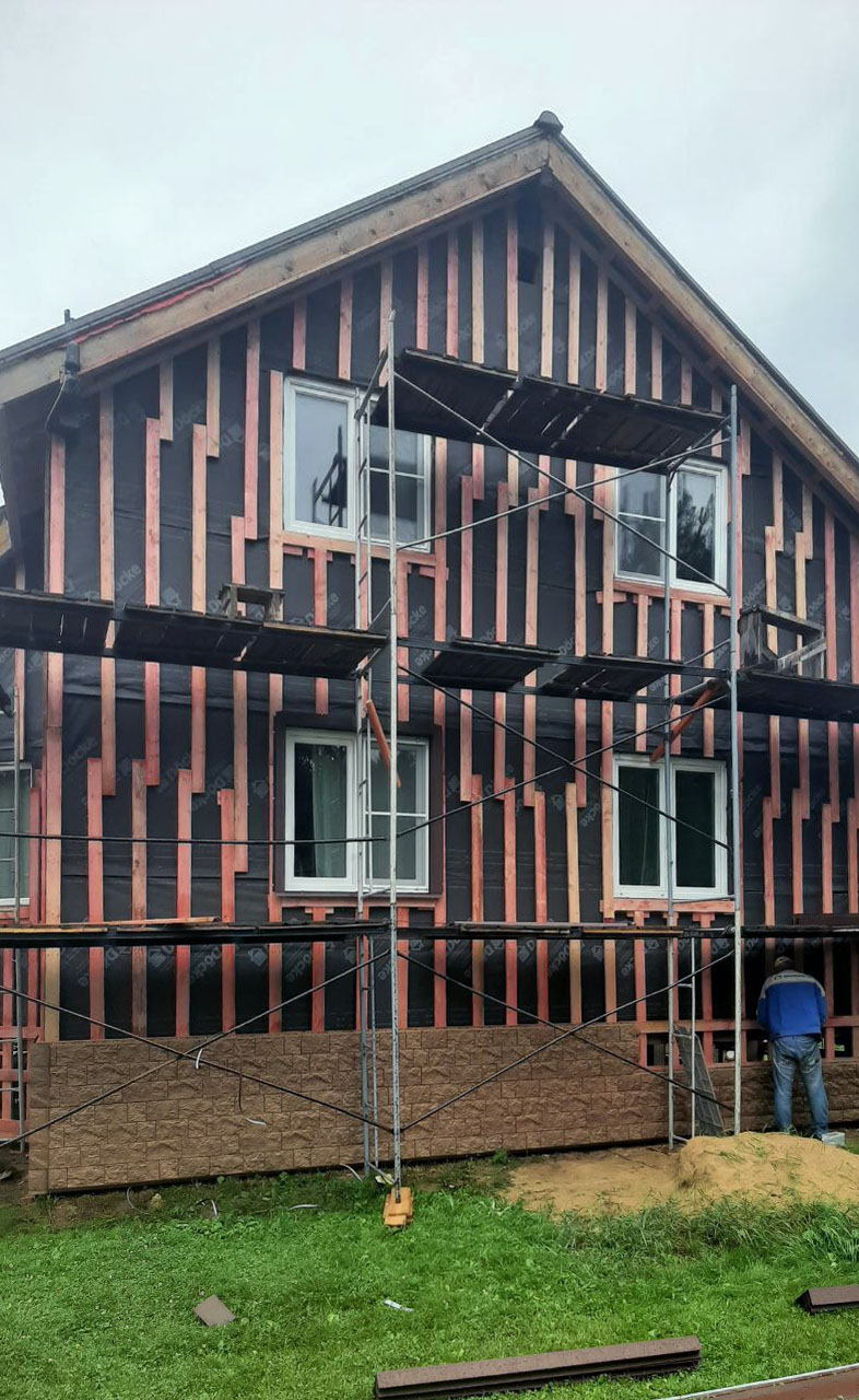 Монтаж деревянной обрешетки по кирпичу/бетону/сваям